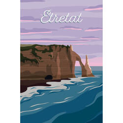 Tableau sur toile 65x97 cm - Tableau illustration plage Etretat - Impression sur toile murale décorative avec châssis en Bois - Fabriqué en France - C