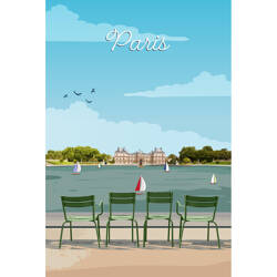 Tableau sur toile 30x45 cm - Tableau illustration jardin du Luxembourg Paris - Impression sur toile murale décorative avec châssis en Bois - Fabriqué