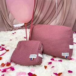 Trousse de toilette rose matelassée - 100% Viscose soyeuse - En stock