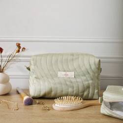 Trousse de toilette verte tilleul matelassée - 100% Viscose soyeuse - En stock