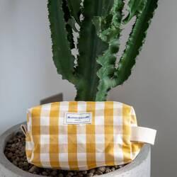 Trousse de Toilette à carreaux jaune moutarde