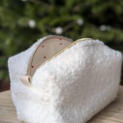 Trousse beauté moumoute blanche doublure petits coeurs rouges
