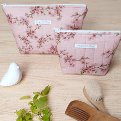 Trousse de toilette personnalisable en gaze de coton rose poudre