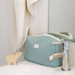 Trousse de toilette imperméable en gaze de coton vert sauge