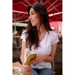 T-shirt Femme Blanc Col V en 100% Coton Bio - Trinité