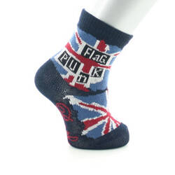 Chaussettes bébé fil d'Ecosse couronne marine sur rayures jaunes